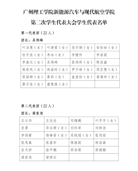 新能源汽车与现代航空学院第二次学生代表大会正式代表名单