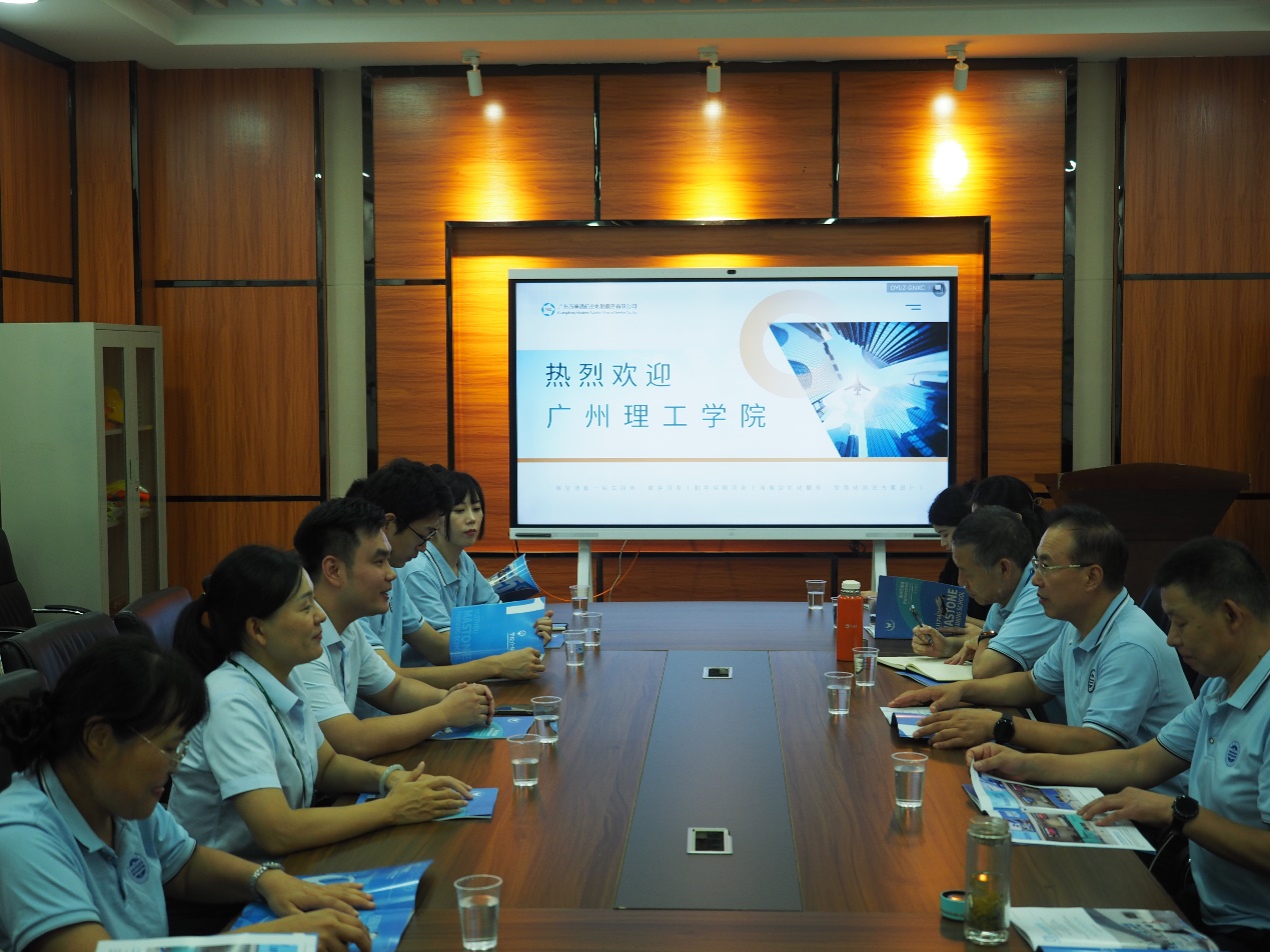交流座谈会上广东万事通林晓山总经理对现代航空学院老师来访表示热烈欢迎,并详细介绍了国内第一家使用在运营机场的场地和设施,搭建全套机场实操场景,提供真实机场工作场景,该实训场地是位于惠州机场的万事通粤港澳大湾区航空孵化培训基地。张院长也介绍了我院专业设置及培养方向、实习实训情况和需求,并就校企进一步深入合作表达了强烈的意愿。
