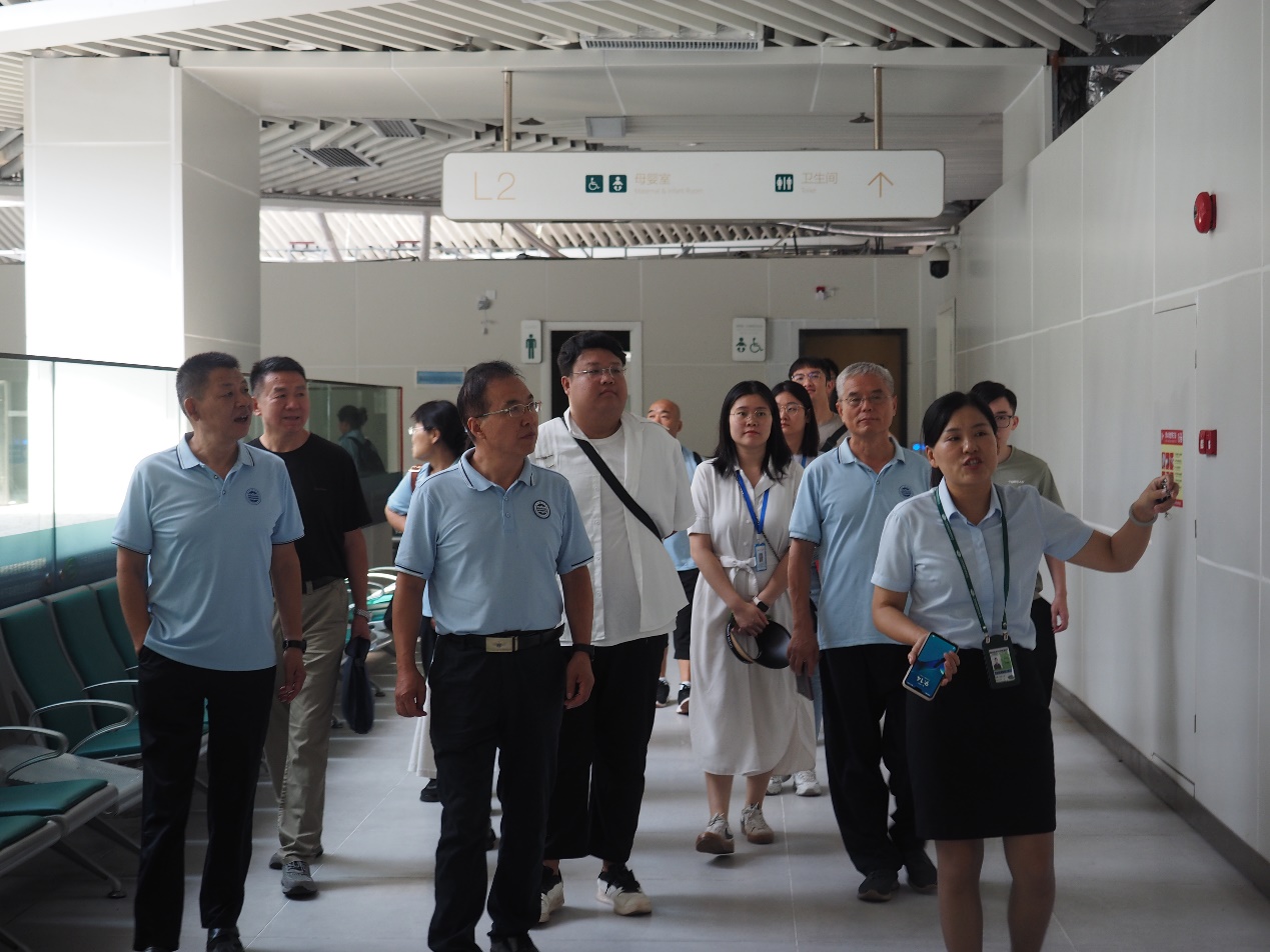 在广东万事通航空地勤服务有限公司教务主任丛秀娟的介绍下,学院教师参观了惠州机场旅客服务区、安检区、登机口等关键区域,了解机场的日常运营流程和旅客服务标准。学院教师对机场的高效管理和先进设施表示赞赏,并就如何将这些实践经验融入课程进行了讨论。通过实地观察和讨论,教师们对航空服务行业有了更直观的认识,这将有助于在教学中更好地融入行业实践。