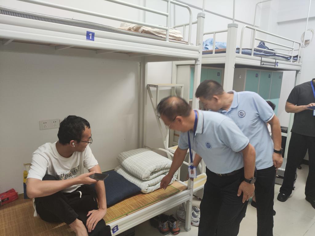 走访过程中,张院长亲切地和新同学们聊起家常,“家乡是哪里的?”“饮食习惯吗?”“初入校园有没有什么困难?”......围绕学习生活的方方面面,送上来自学校的关心与温暖。叮嘱同学们遇到困难或困惑时,要及时向辅导员或班导师反应,学校一定切实为同学们解决问题。同时,提醒同学们要规划好大学生活,提高安全意识,谨防线上线下任何形式的电信诈骗活动,时刻注意寝室安全和用电安全,注意个人卫生和宿舍卫生,谨防防火防盗,外出关好门窗,共同维护一个安全、健康、和谐的住宿环境。他勉励同学们珍惜大学美好时光,在大学校园里,要树立正确的人身观、世界观、价值观,努力学好专业知识,增强社会实践能力,提高综合素质,认真规划未来之路,脚踏实地、努力奋斗。