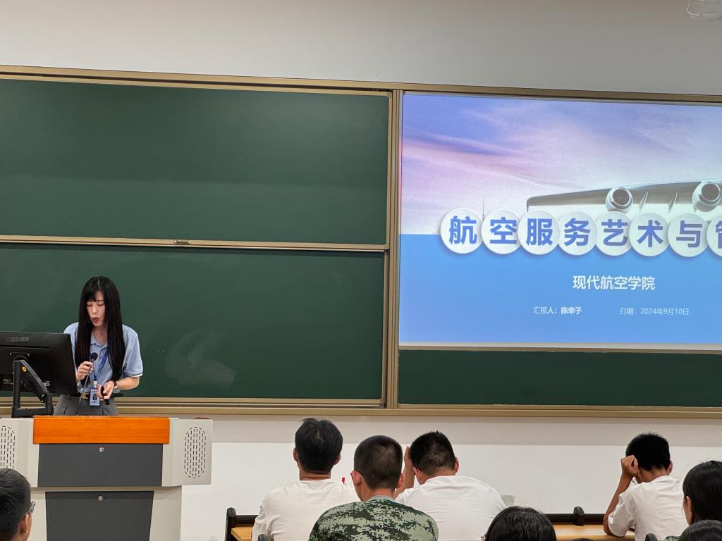 陈老师从航空服务艺术与管理系课程设置、未来发展和就业方向等方面为新生解答疑,从而培养新生的专业兴趣、强化专业意识,加强高质量就业指导。