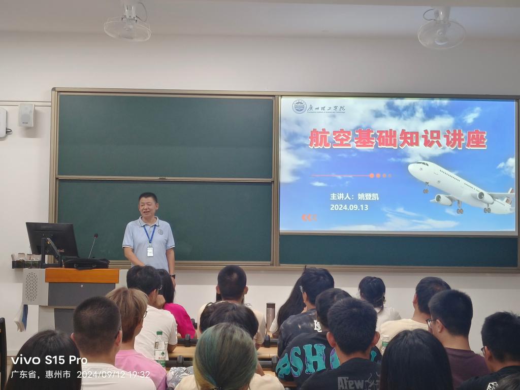 为丰富学生校园文化生活,增强学生航空文化素养,助推学校航空内涵建设,9月12日,现代航空学院在教学楼403教室举办航空文化知识专题讲座,现代航空学院副院长姚登凯教授应邀作了题为“航空基础知识”专题讲座,辅导员朱隆奇老师主持,2024级全体新生参会。