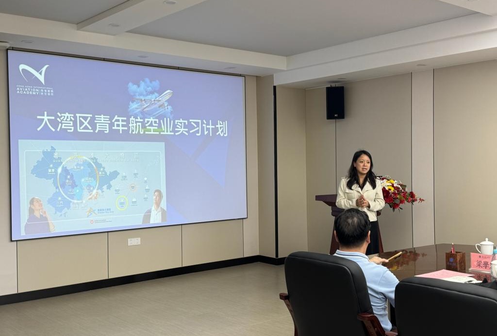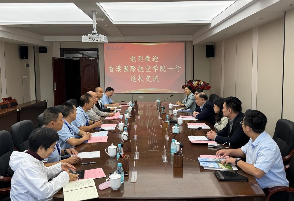 本次座谈交流会以“促进产教融合,推动人才培养”为主题,旨在促进产学合作,探索深化校企合作的新途径,帮助更多学生更好地实践及就业。校长胡社军与香港国际航空学院总监许先恩先生进行友好会谈并合影留念,副校长陈汉君全介绍了我校办学历史和办学特色,强调产教融合在应用型高校建设中发挥的重要作用。现代航空学院院长张瑞琦介绍了学院的人才培养模式和未来发展构想。香港国际航空学院总监许先恩先生就“大湾区青年航空实习计划”的背景、开展情况进行了介绍。培训中心经理施雯雯女士就面试报名、面试和实习签证以及生活的安排进行了详细的讲解。