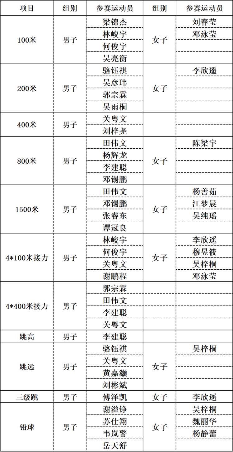 经过新能源汽车与现代航空学院院运会选拔及学院推荐,拟确定以下同学晋级校运会,现公示: