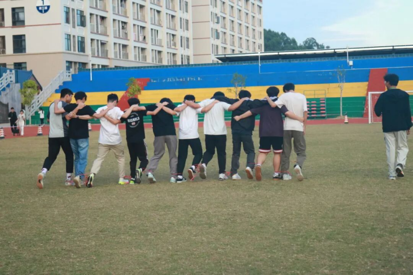 比赛正式打响,各参赛队伍迅速进入状态。队员们两两相邻,将相邻的脚紧紧绑在一起,以独特的“十一条腿”组合向前奋力跑进。两支队伍同时开启这场速度与协作的较量,他们步伐急促却又不失协调,最终用时少的两支队伍成功晋级决赛。“十人十一足”这一项目,看似简单,实则对同学们的团结、默契以及坚持的勇气有着极高的考验。在比赛过程中,“一二,一二,一二……”整齐而响亮的口号声回荡在赛场上空。最终25空乘1班成功脱颖而出,他们征服的不仅仅是那段短短的距离,更是团队从混乱到有序、从个体到整体的升华。