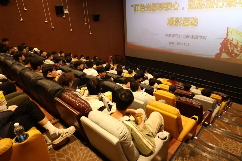 11月19日下午,新能源汽车与现代航空学院组织师生在团总支书记侯春明老师以及杜可欣、林格女两位助理辅导员的带领下顺利开展了“红色光影映初心,砥砺前行续华章”主题观影活动。通过集体观看红色影片,重温革命先辈的奋斗历程,让师生在革命精神洗礼中坚定理想信念。本次活动创新性地选择外出形式,打破传统课堂边界,在沉浸式体验中深化爱国主义教育,激励我院学子将革命先辈的奋斗精神转化为科技报国的实际行动,在新时代征程中展现汽航人的责任担当。