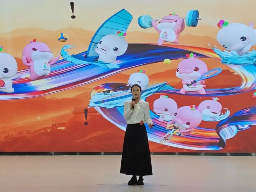 主持人依次介绍莅临现场的专业评委与嘉宾,对他们的指导支持致以诚挚感谢。本次决赛以“逐梦十五运,炫彩绘青春”为主题,选手们围绕赛事精神、青春拼搏、责任担当等方向展开演讲。我院一号选手盘澄怡充分展示了语言的魅力与感染力,她台风稳健,举止得体,凭借精准的语速把控、恰到好处的情感渲染以及自信从容的肢体语言,牢牢抓住了评委与观众的注意力,将现场氛围推向高潮。