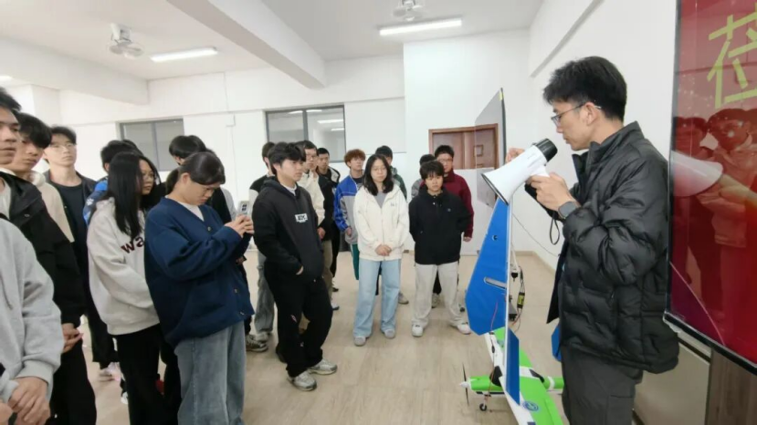 12月4日,广州理工学院低空经济与航空学院组织无人驾驶航空器系统工程专业全体学生,在张瑞琦院长、姚登凯副院长、张秀军、殷亮、李全通、王佳慰、凌坚以及熊利平等多位老师的带领下,开展了第四场沉浸式专业认知实习活动。本次实习在3栋204、206无人机先锋工作室进行,由王佳慰老师担任主讲,通过系统讲解与实物观摩相结合的方式,帮助同学们深入理解无人机技术前沿,强化专业认同,拓宽行业视野。
