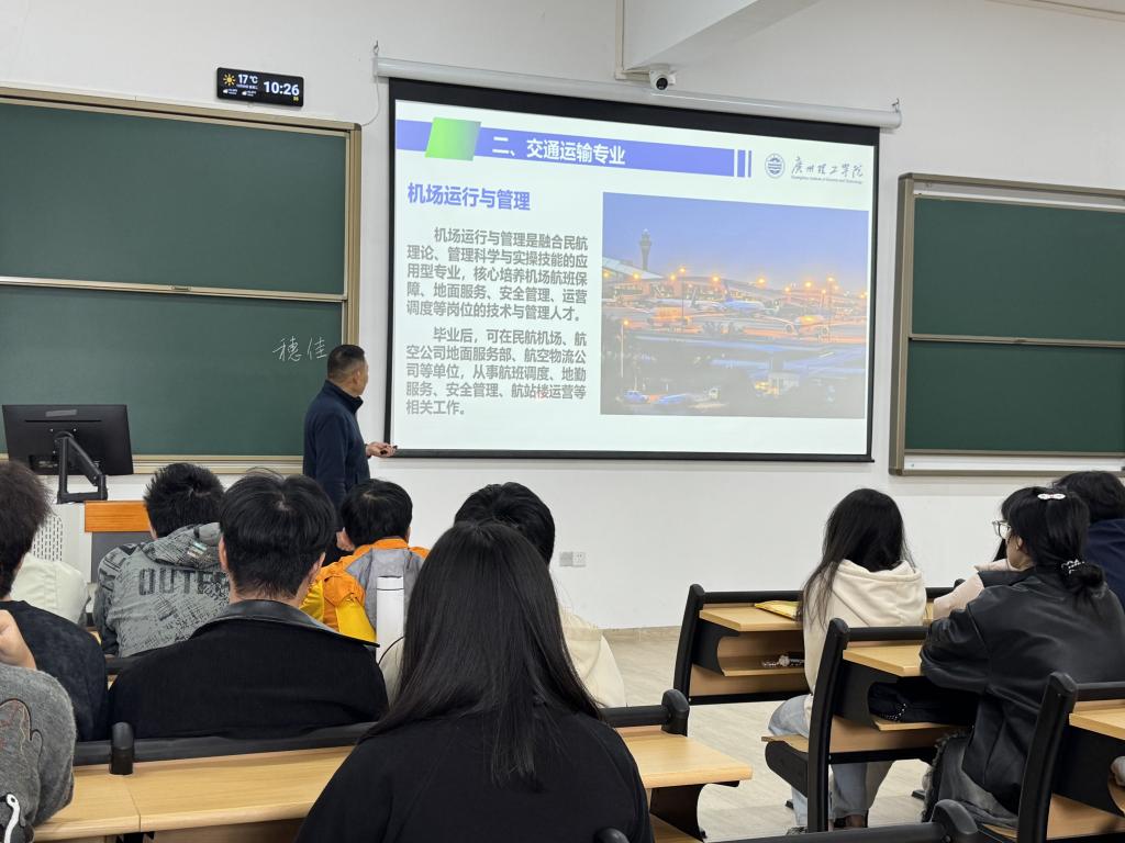 姚副院长强调,学院将持续推进课程体系升级与产教融合深度发展,目前已与广州白云机场、深圳宝安机场、香港国际航空学院及多家航空企业建立紧密合作关系,通过共建实训基地、开展订单式培养等举措,助力学生实现从“基层岗位操作”到“高层管理决策”或“核心技术专家”的稳步进阶。他勉励在场同学,要扎实筑牢专业知识根基,积极考取行业权威证书,主动投身各类实习实践活动,为未来投身民航事业、建功立业积蓄力量。