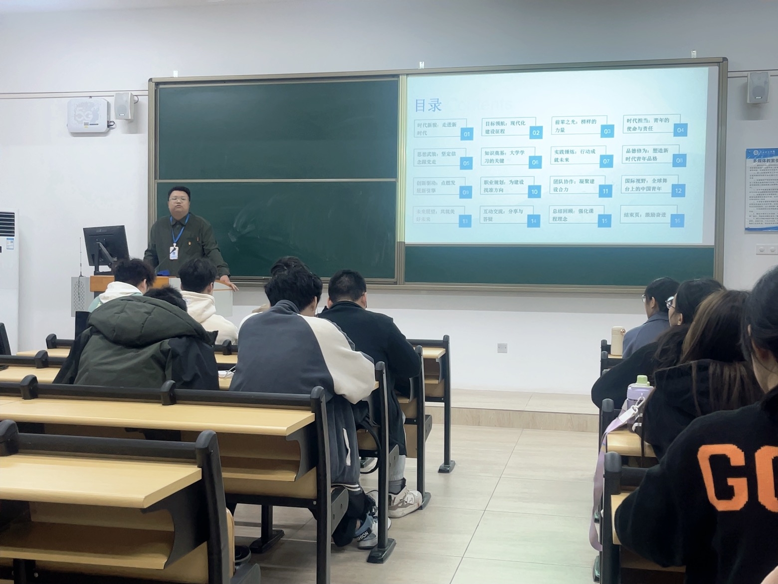 课程最后,狄铁成鼓励大家积极投身社会主义现代化建设,用奋斗书写青春华章。他强调,奋斗是青春最亮丽的底色,行动是青年最有效的磨砺。希望同学们能以实际行动践行“请党放心,强国有我”的青春誓言,在社会主义现代化建设的新征程中,勇当先锋,敢打头阵,为实现中华民族伟大复兴的中国梦贡献青春力量。