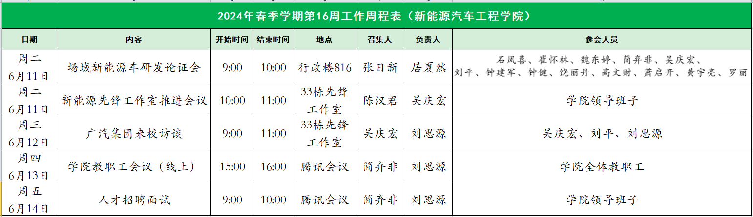 2024年春季学期第16周工作周程表(新能源汽车工程学院)